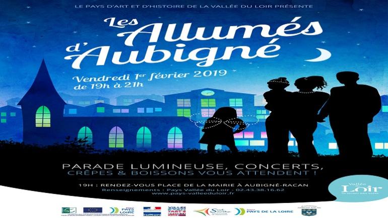 "Les Allumés d'Aubigné" est la première édition d’une fête des lumières participative qui valorise le patrimoine d’un village de la Vallée du Loir. Le Pays d’art et d’histoire, en partenariat avec la commune d’Aubigné-Racan, a fait appel à l’association « Patrimoine à roulettes ». Cette association bruxelloise est spécialisée dans la création d'événements où chaque habitant est invité à fabriquer, inventer, s’amuser pour sublimer le bourg du village. Cet évènement aura lieu le 1er février dans les rues d'Aubigné-Racan.