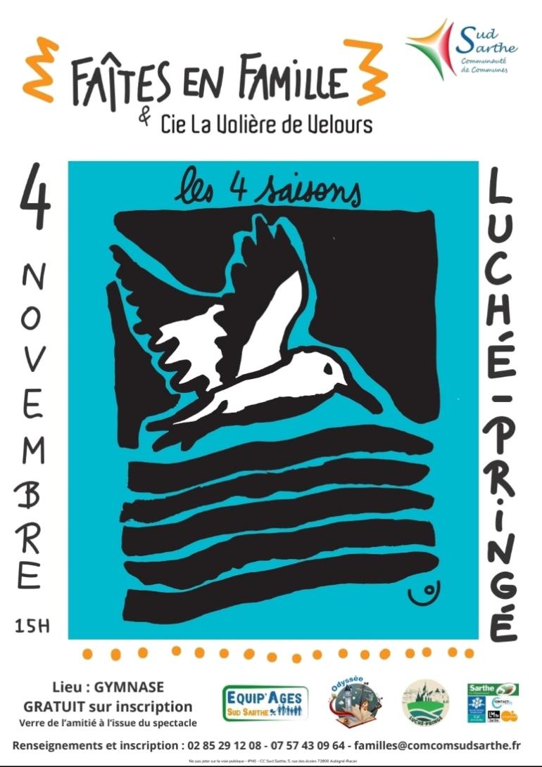 Les 4 saisons, c'est la création originale de la Compagnie La Volière de Velours que les habitants auront le privilège de découvrir le samedi 4 novembre 2023 au Gymnase de Luché-Pringé.
