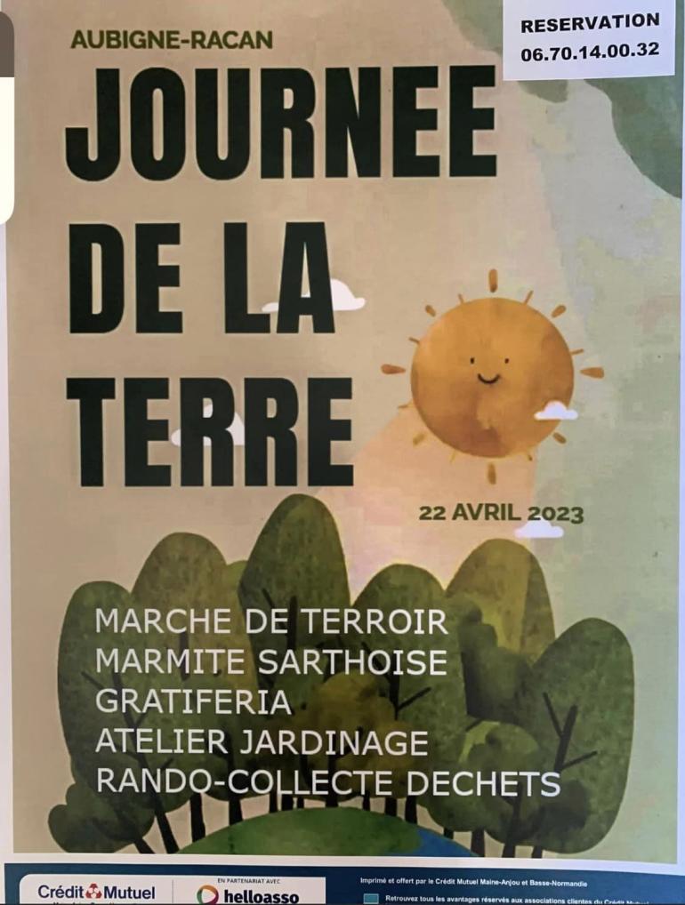 A l'occasion de la journée de la Terre, célébrée à l'échelle mondiale le 22 avril 2023, le Comité des fêtes d’Aubigné Racan organise pour la première fois plusieurs événements. Michel Dian, le président, a présenté le programme qui rassemble notamment "un marché de terroir de regroupant différents producteurs, adeptes du circuit court, ainsi que des artisans locaux à partir de 8h sur la Place de la mairie, une zone Gratiféria sur la place de l'église, une "Marmite sarthoise" à réserver à l'avance, une rando-collecte de déchets, etc."