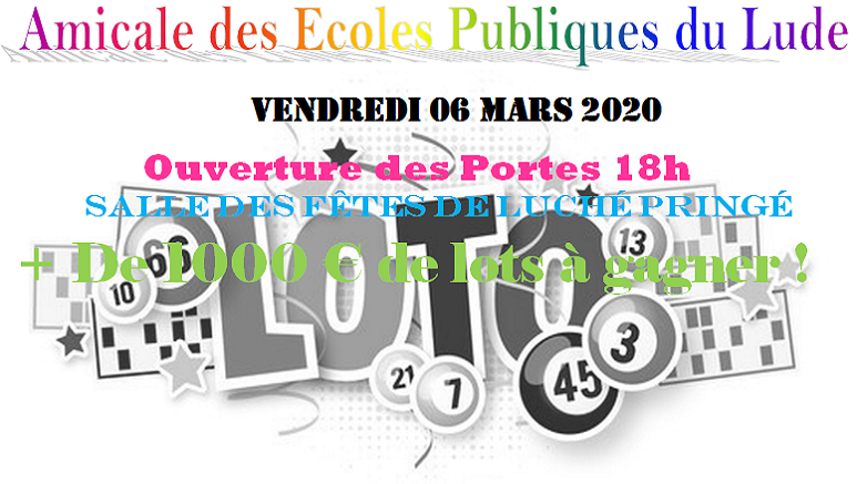 Prochain rendez-vous le Loto à Luché Pringé le 06-03-2020 ouverture des portes 18h et debut 20h dans la salle des fêtes.