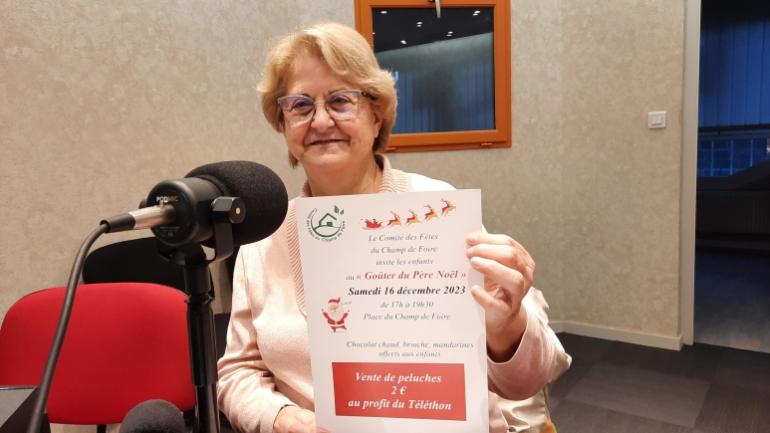 A La Flèche, le Comité des fêtes du Champ de Foire organise un "Goûter du Père Noël" le samedi 16 décembre 2023 de 17h à 19h30 sur la Place du Champ de foire. Anne-Marie Reignoux, présidente de l'association invite les enfants à profiter de l'événement.