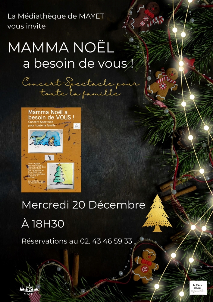 Mamma Noël a besoin de vous ! Un concert-spectacle interactif proposé par la Cie La Fière Allure le mercredi 20 décembre 2023 à la Médiathèque Simone Veil de Mayet. Et le Père Noël dans tout ça ? Pour y voir plus clair, nous avons demandé à Stéphanie Denizé, animatrice culturelle, de nous parler du concept.