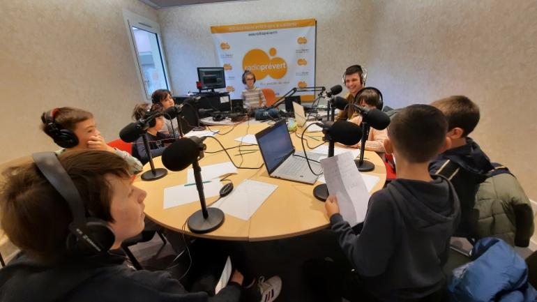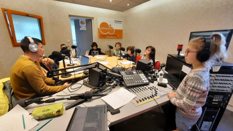 Rencontre au sommet pour Ugo Franchet, responsable partenaires et communication du Racing Club Fléchois avec des radioteurs des Tickets Sports des vacances d'automne. Livio, Lucas, Lucie, Milana, Lou, David (joueur de l'ACC), Camille (sociétaire du RCF) et Augustin s'intéressent aux actualités du RCF et parlent des disciplines sportives qu'ils pratiquent et/ou qu'ils aimeraient pratiquer.